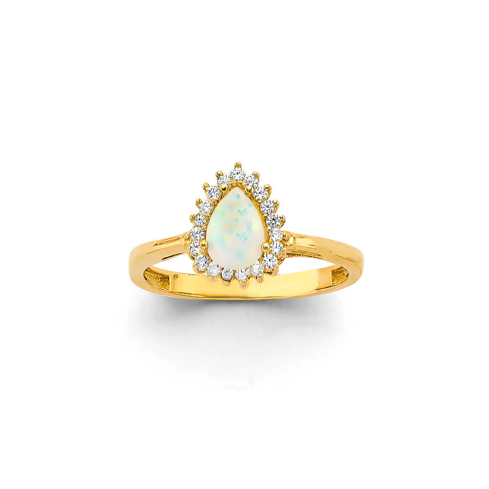 14K Yellow Gold CZ Drop Opal Ring Or Set