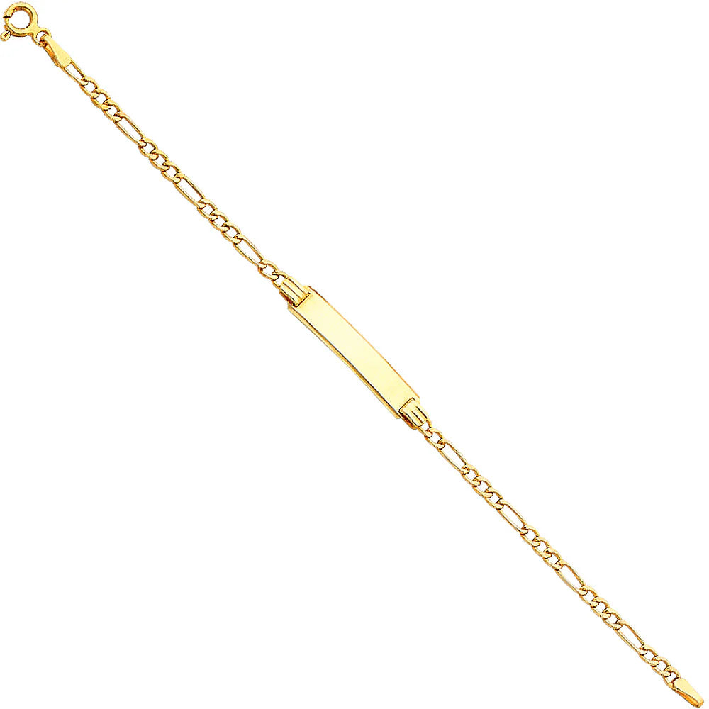 14K Yellow 060 HOLLOW Figaro 3+1 BABY ID Bracelet