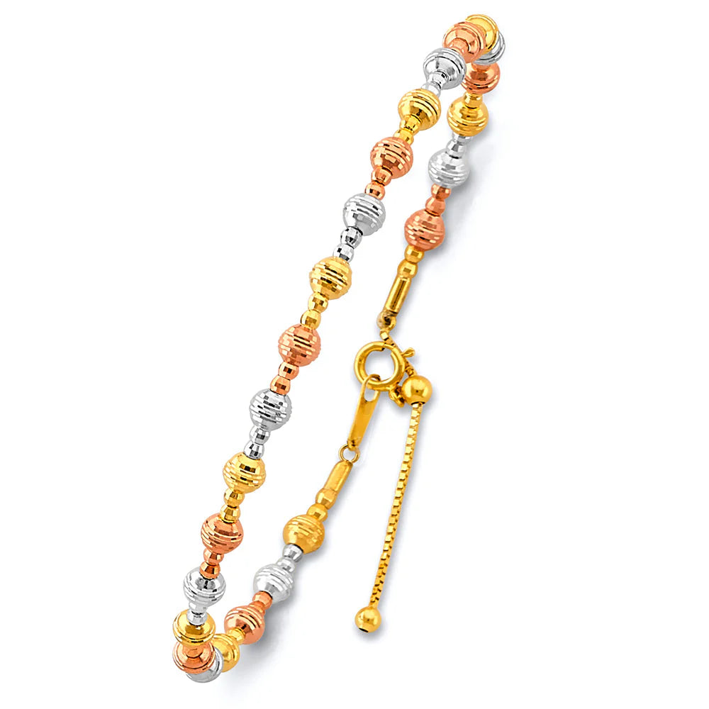 14K Tri Color Gold Small Ball Adjust Oval Bangle With Ball