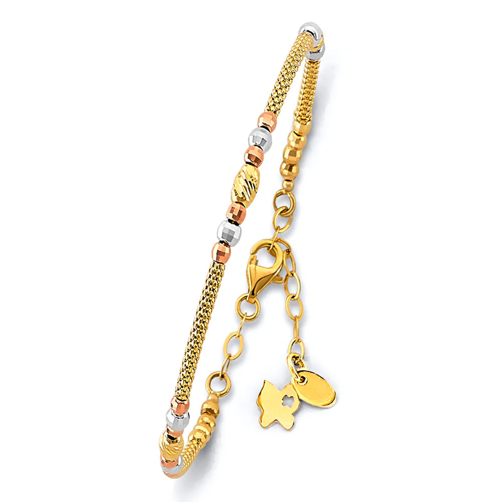 14K Tri Color Gold Fancy Adjust Oval Bangle With Ball