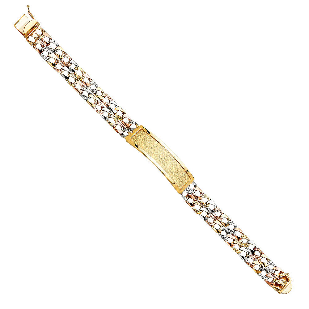 14K Tricolor Two Line Nugget Cuban LIT LINK Figaro ID Bracelet