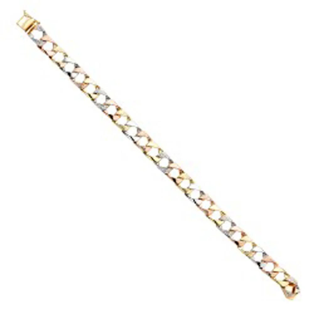 14K Tri Color Gold Fancy Cuban Link Bracelet