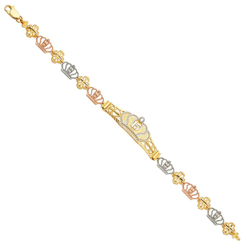 14K Tricolor 15Years CZ Bracelet-7.5 inches