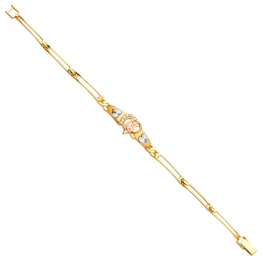 14K Tricolor 15Years CZ Bracelet-6 inches