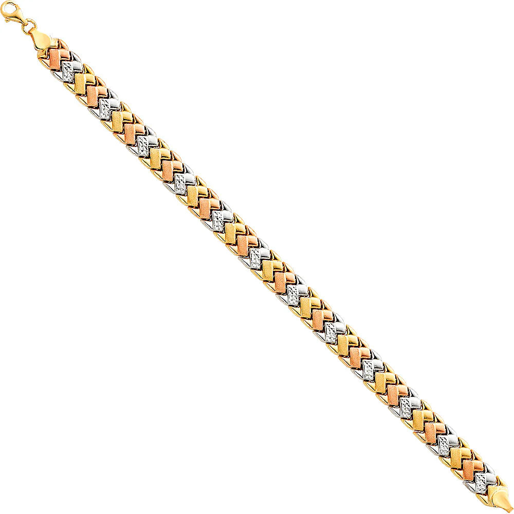 14K Tri Color Gold Light Stampato Heart Bracelet