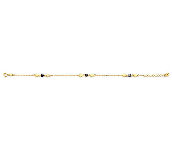 14K Yellow Gold Evil Eye And Heart Bracelet
