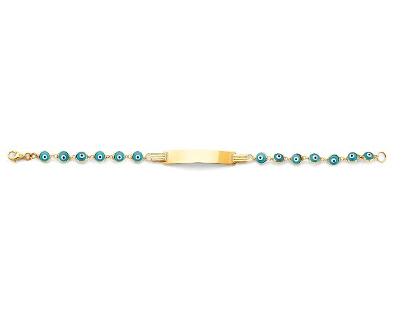 14K Yellow Gold Blue Evil Eye Baby ID Bracelet