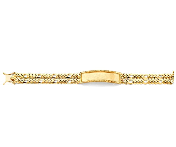 14K Yellow Gold Figaro Frame ID 2Line Bracelet