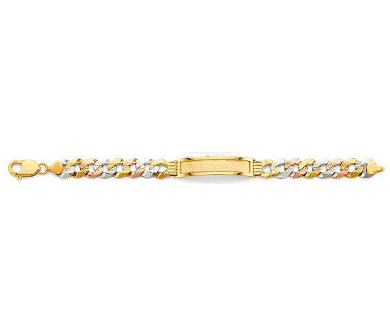 14K Tri Color Gold Nugget Cuban Frame ID Bracelet