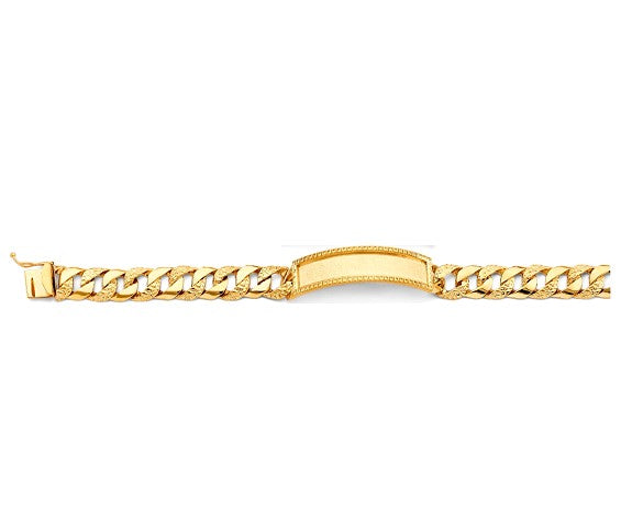 14K Yellow Gold Nugget Cuban Frame ID Bracelet