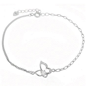 Sterling Silver Thin Curb-Paperclip with CZ Butterfly Rhodium Bracelet