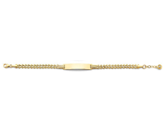 14K Yellow Gold CZ Baby ID And Leaf Bracelet