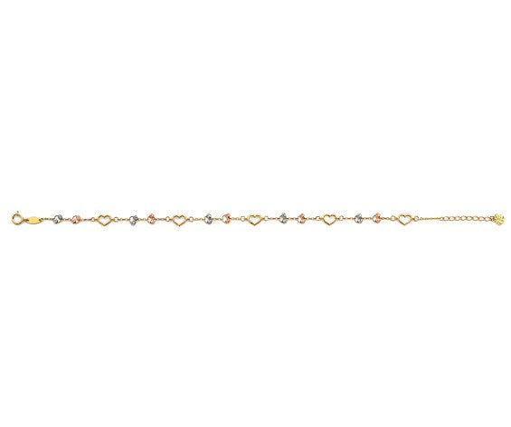 14K Tri Color Gold Light Heart Bracelet And Anklet