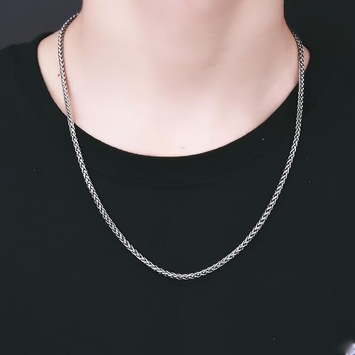 Sterling Silver High Polished Wheat Chain with Lobster Clasp Closure