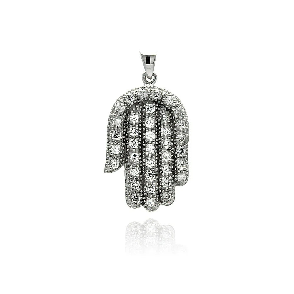 Sterling Silver Rhodium Plated Hand CZ Dangling Pendant
