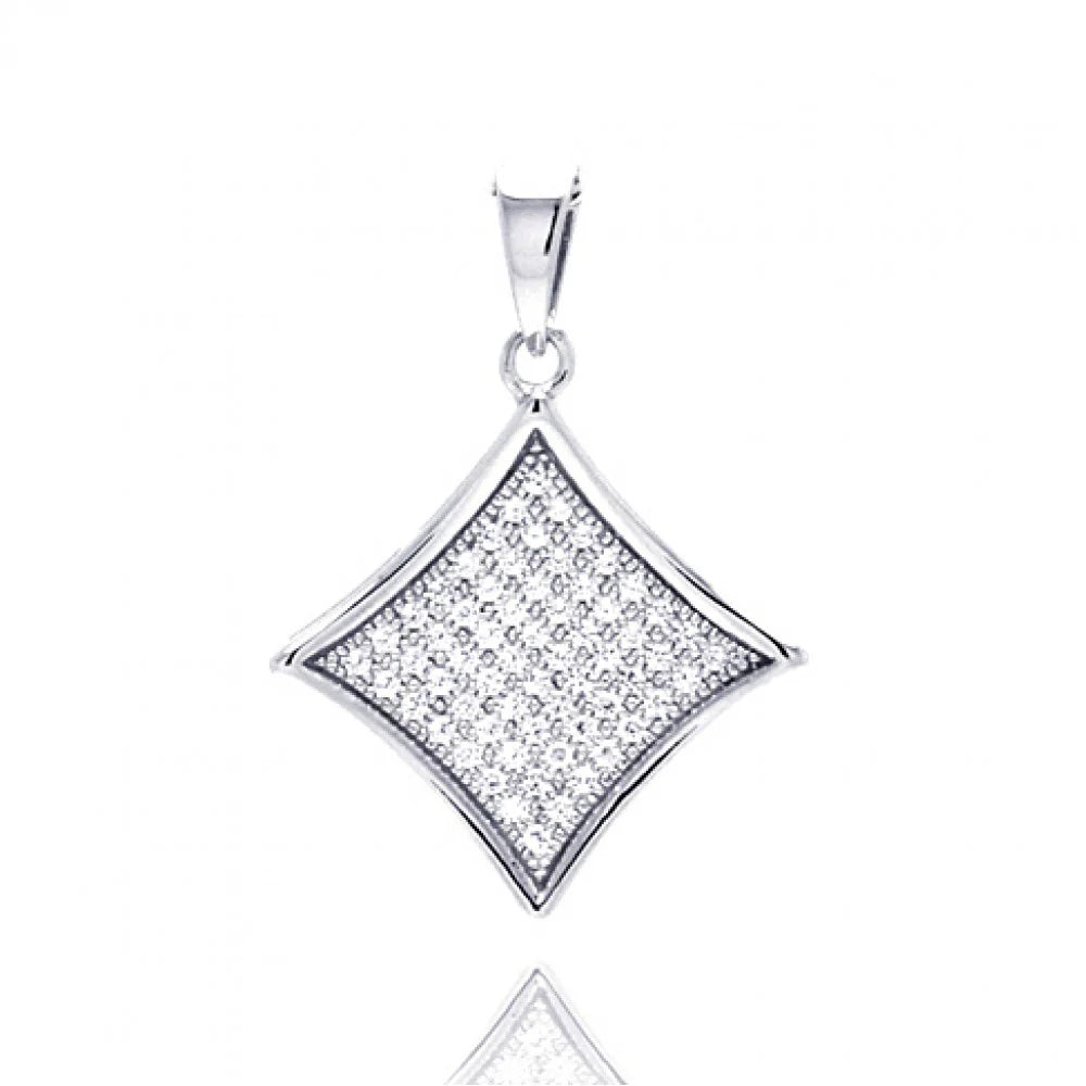 Sterling Silver Rhodium Plated Square Micro Pave CZ Dangling Pendant