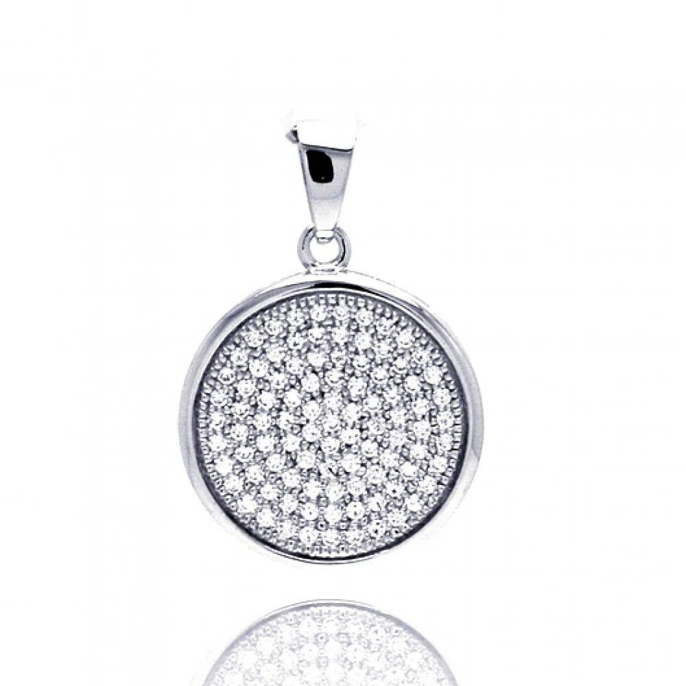 Sterling Silver Rhodium Plated Circle Micro Pave CZ Dngling Pendant