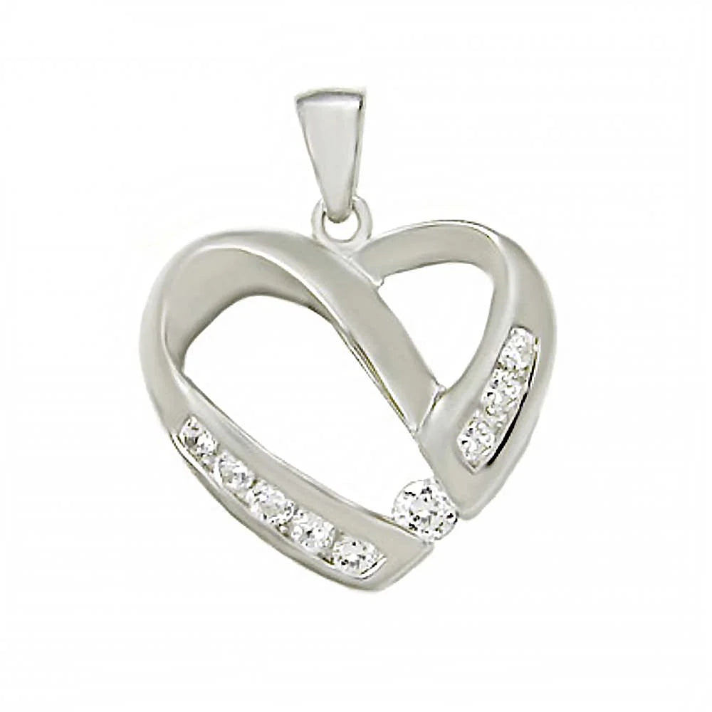 Sterling Silver Stylish Single Coiling Oopen Heart Pendant with Embedded Clear Cz Stones on the Bottom HalfAnd Pendant Dimensions of 20MMx25.4MM