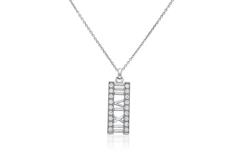 Sterling Silver Fancy Roman Number 3And6And12 Pendant with White CzAnd Pendant Dimensions of 10MMx34.93MM