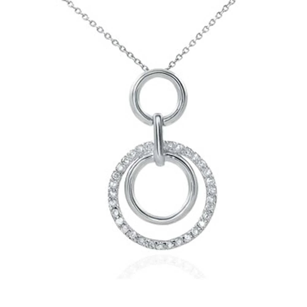 Sterling Silver Stylish Double Circle Pendant with White CzAnd Pendant Dimensions of 22MMx1.19MM