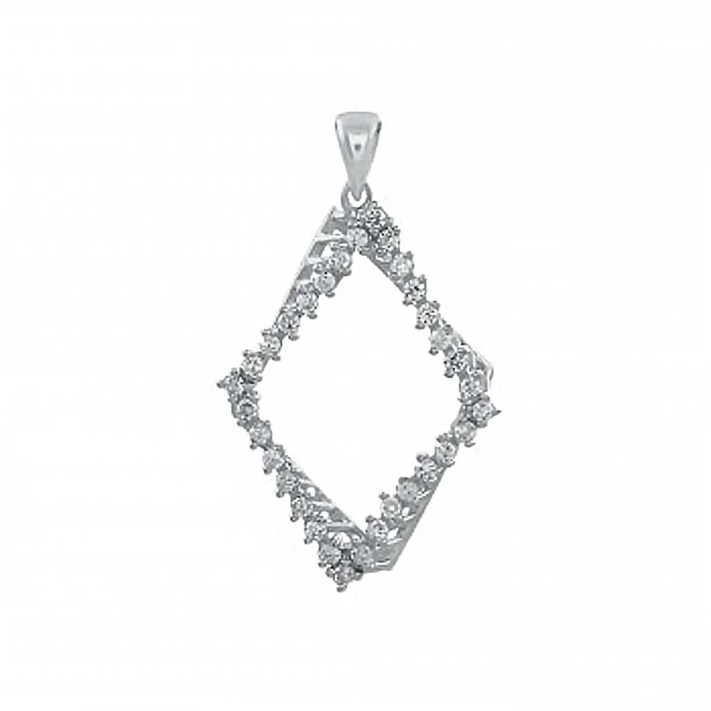 Sterling Silver Fancy Open Diamond Shape Pendant with Clear CzAnd Pendant Dimensions of 21MMx28.58MM