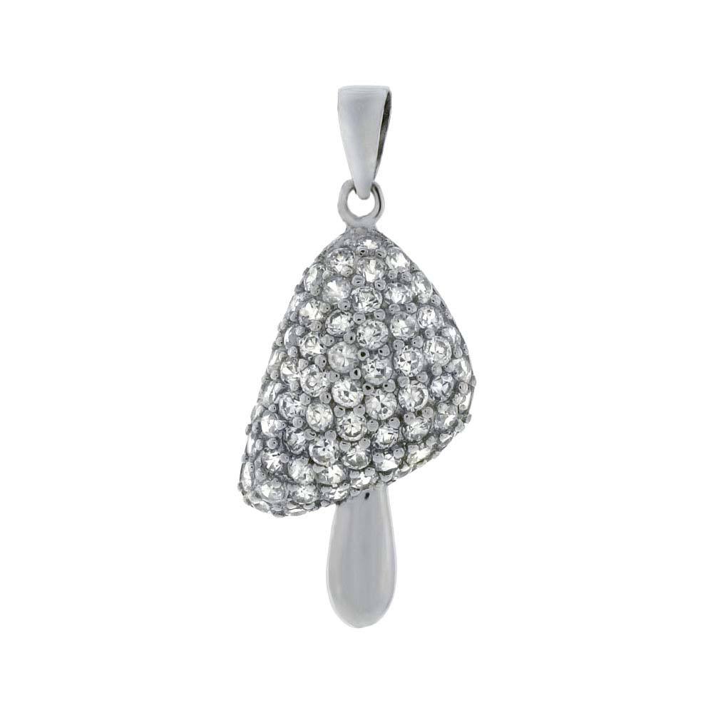 Sterling Silver Fancy Mushroom Pendant with Clear CzAnd Pendant Dimensions of 25.4MMx15MM