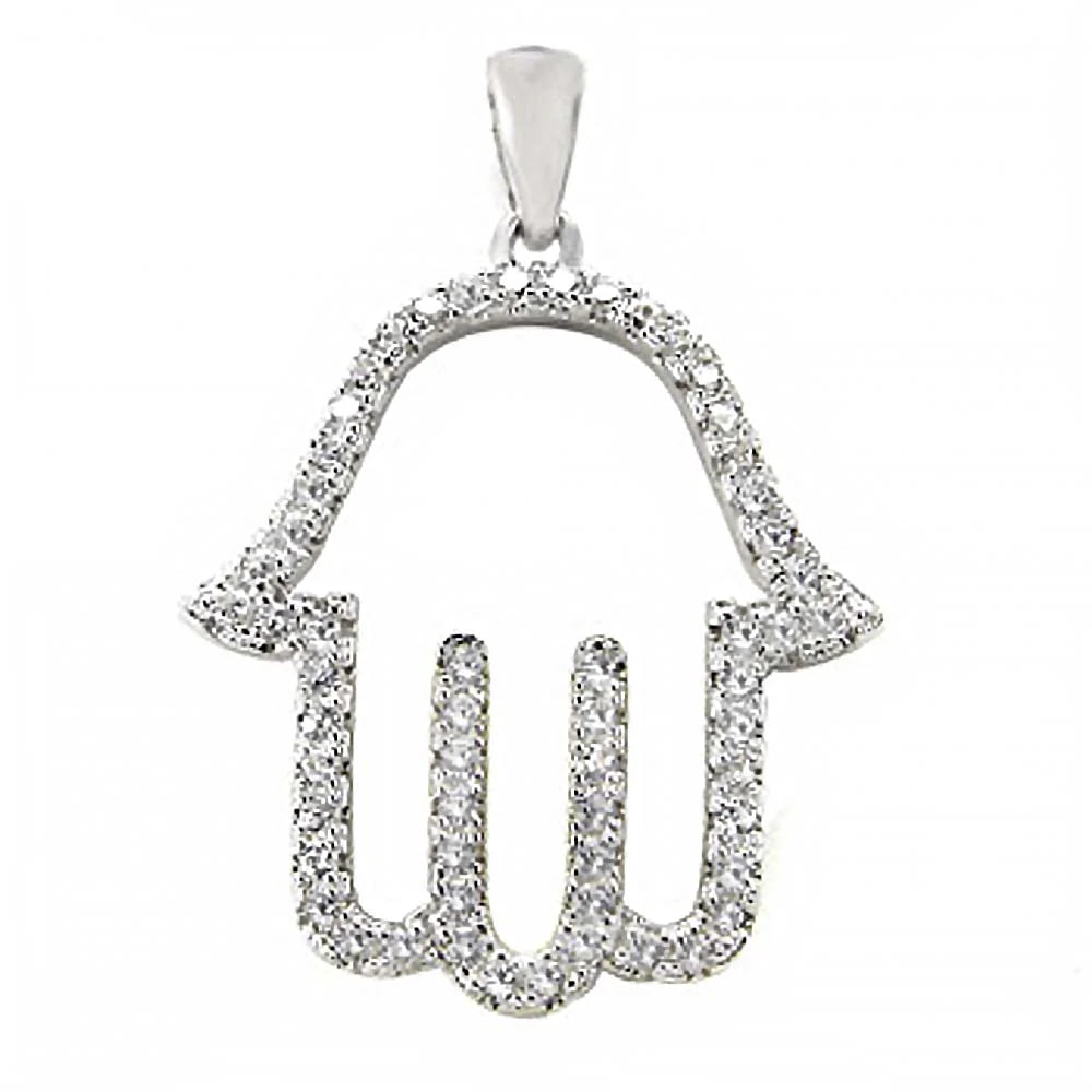 Sterling Silver Fancy Hand of God Pendant with Clear CzAnd Pendant Dimensions of 21MMx28.58MM