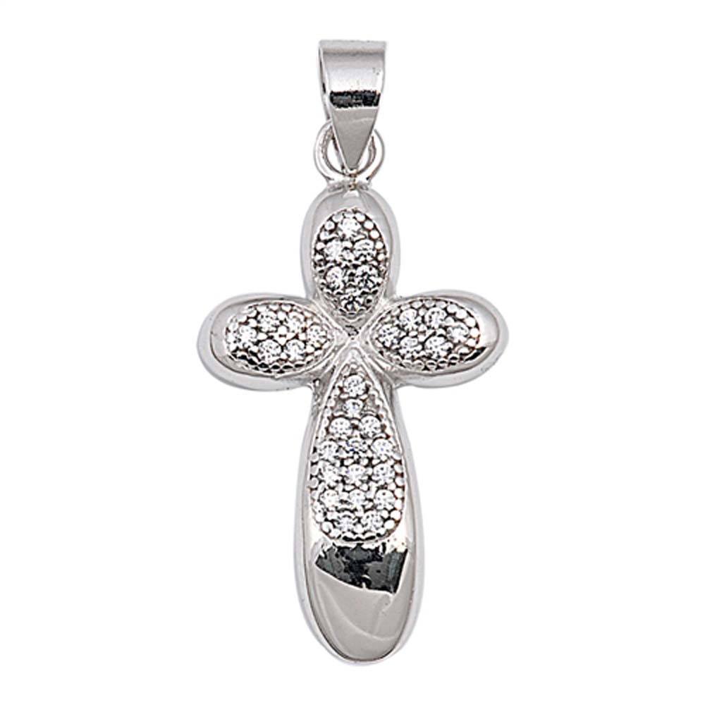 Sterling Silver Pear Shaped Cubic Zirconia Cross PendantAnd Pendant Height 22 mm