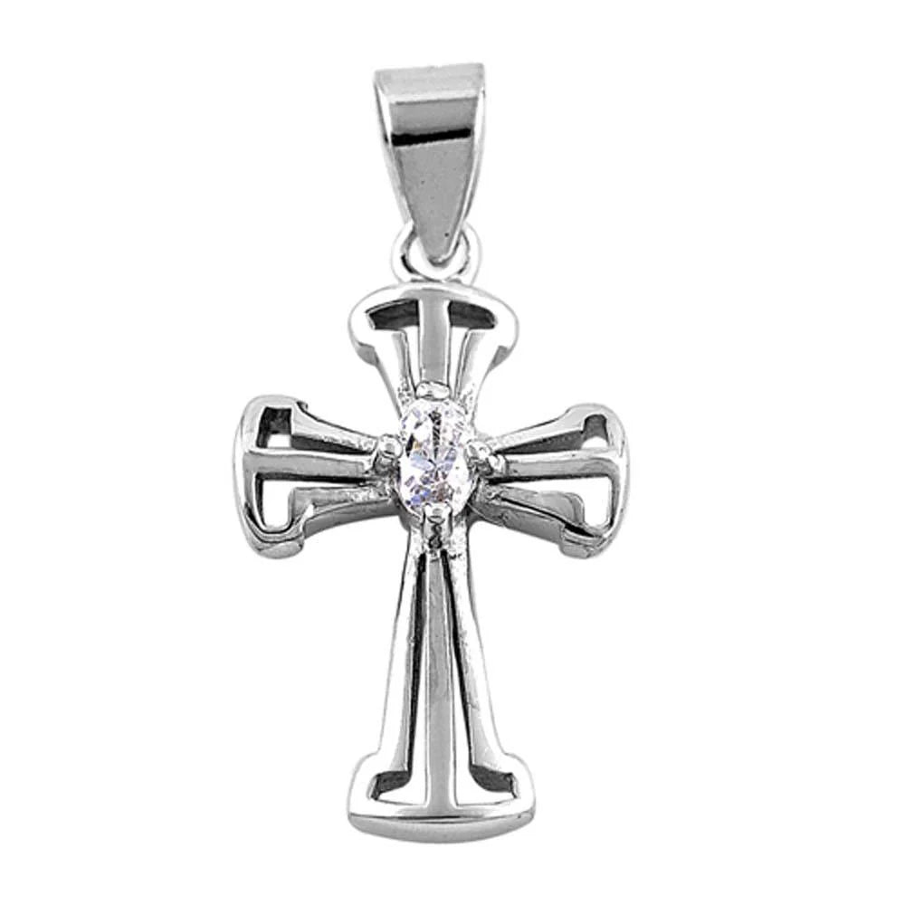 Sterling Silver Oval Clear Cubic Zirconia Cross PendantAnd Pendant Height 21 mm