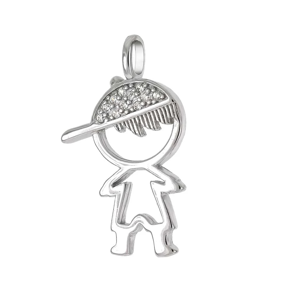 Sterling Silver Boy Cubic Zirconia Pendant