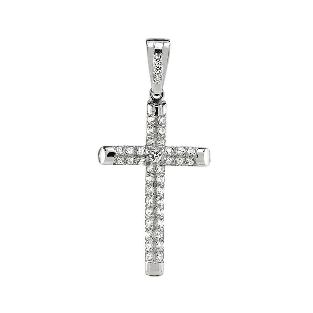 Sterling Silver Cubic Zirconia Tube Cross Pendant And Width 10 inch\r\n