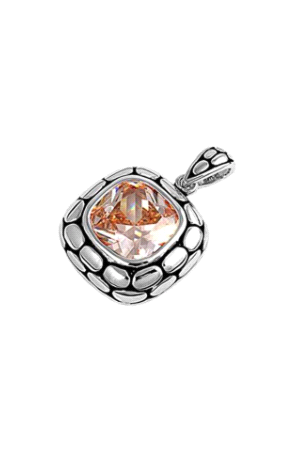 Sterling Silver Champagne CZ Rhodium Plated Square PendantAnd Height 27mm