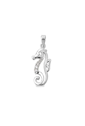 Sterling Silver Seahorse Pendant with Clear Simulated Diamonds