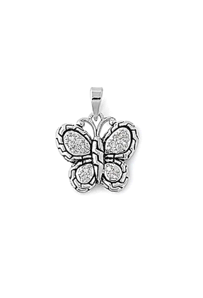 Sterling Silver Butterfly Pendant with Clear Simulated Diamonds