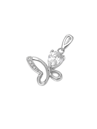 Sterling Silver Fancy Butterfly Pendant with Simulated Pear Diamond Side Wing