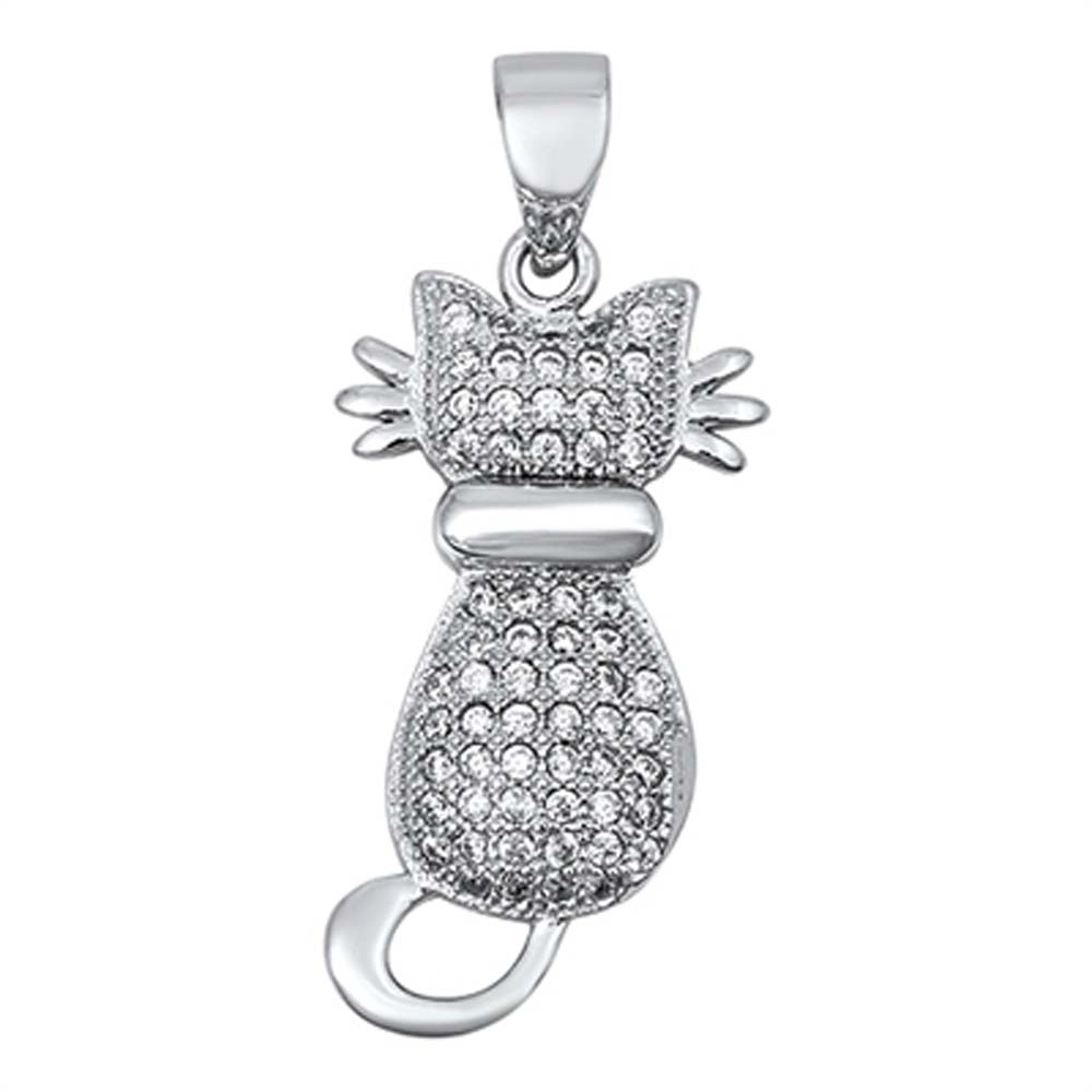 Sterling Silver Fancy Micro Pave Cat Pendant with Pendant Height of 24MM