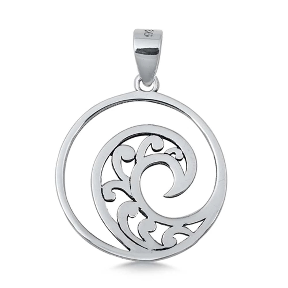 Sterling Silver 20mm Wave Plain Pendant