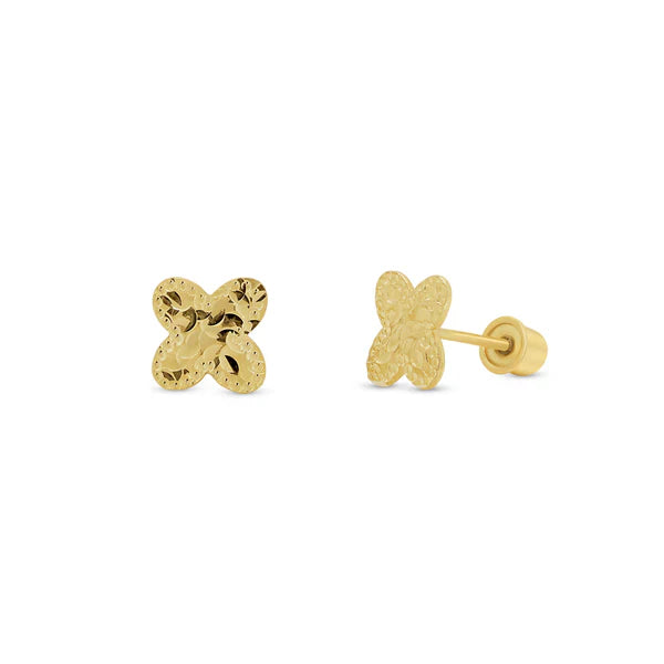 14K Yellow Gold Beaded And Diamond Cut Confetti Clover Screw Back Earrings