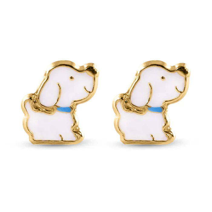 14K Yellow Dog Screw Back Earrings