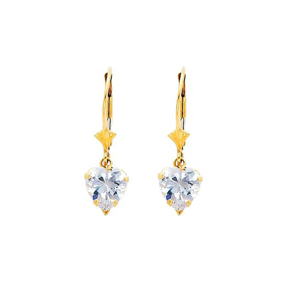 14K Yellow Gold CZ Heart shape Hanging Earrings