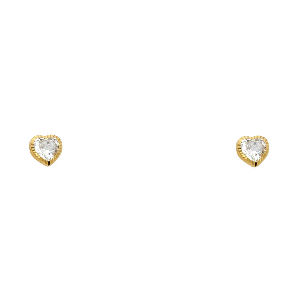 14K 4MM Heart CZ Stud Earrings SOLITAIRE D/C SCREW Stud Earrings