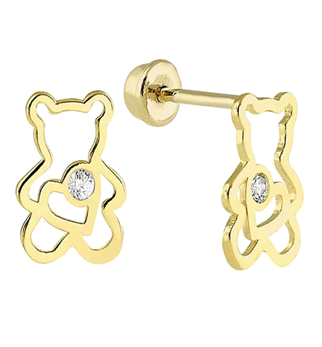 OroTrue 14K Yellow Gold Bear Heart Silhouette With CZ Screw Back Earrings