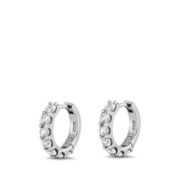 Sterling Silver Rhodium Plated 3mm Huggie Clear CZ Earrings-13mm
