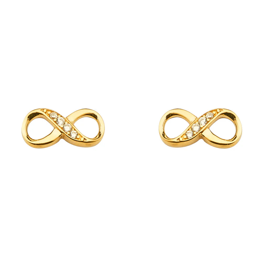 14K Yellow Gold CZ Infinity Earrings With Push Back