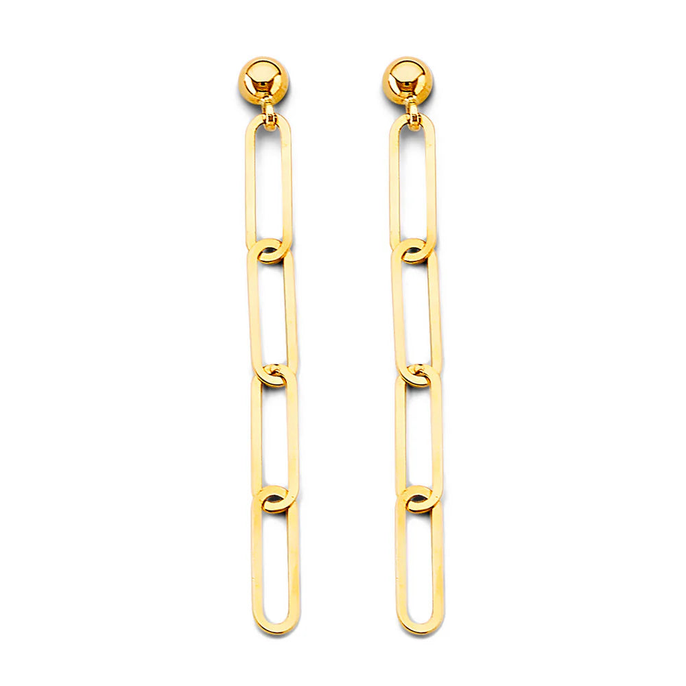 14K Yellow Gold 3mm Paperclip Earrings With Pushback