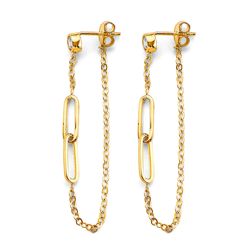 14K Yellow Gold CZ Paperclip Hanging Earrings