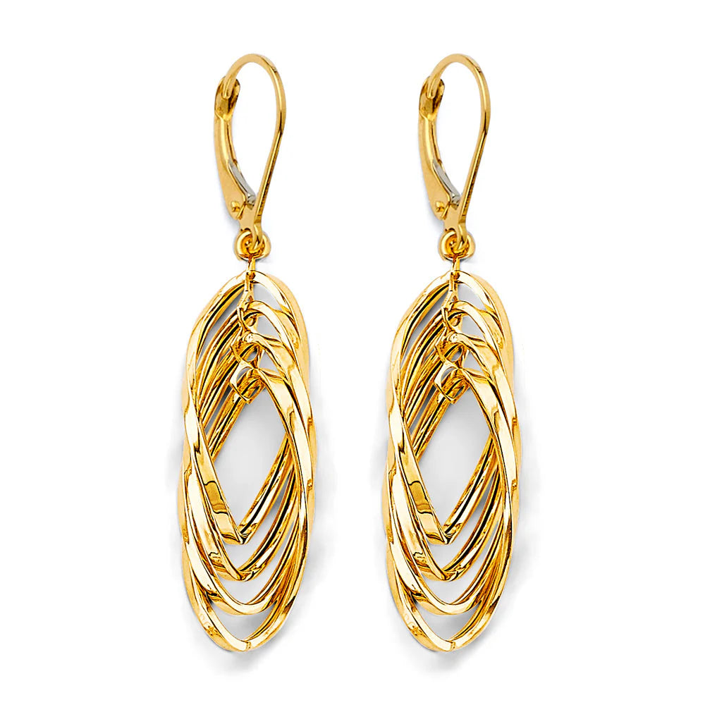 14K Yellow Gold Hanging Hollow Tube Earrings