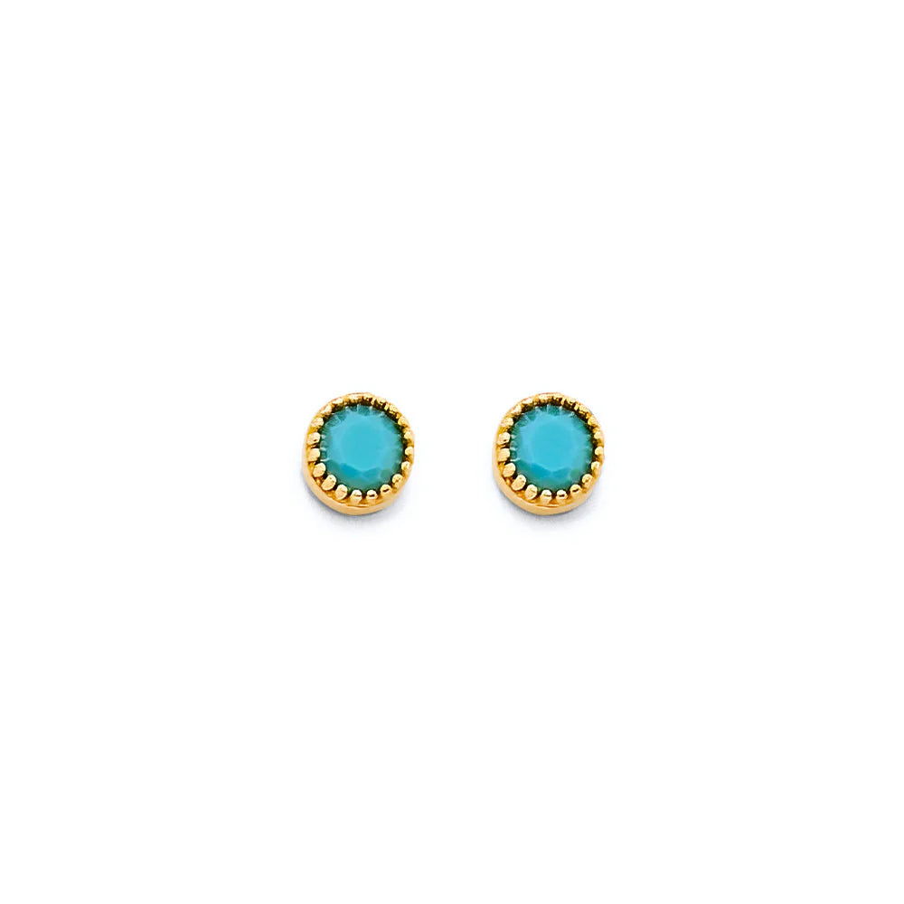 14K Yellow Gold Round Turquoise Push Back Earrings