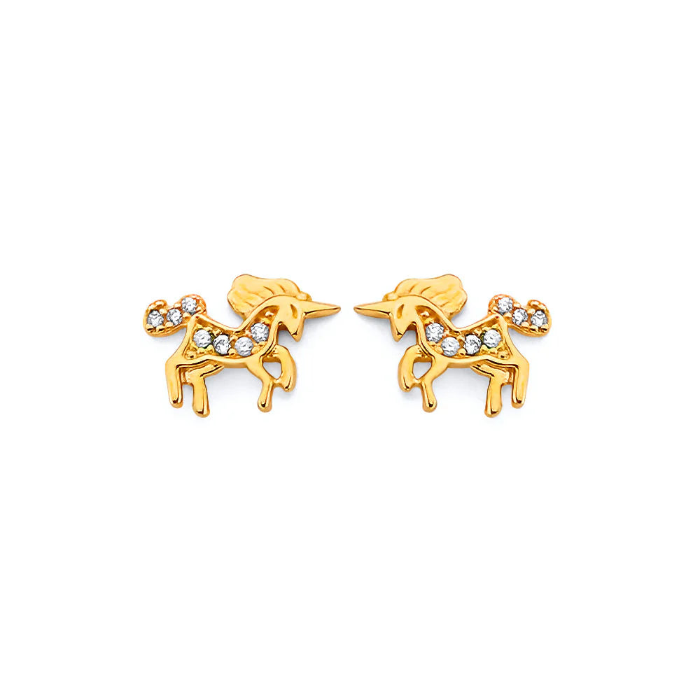 14K Yellow Gold CZ Unicorn Push Back Earrings