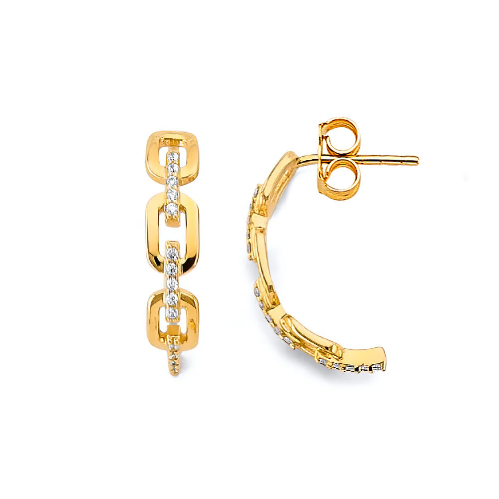 14K Yellow Gold CZ Link Style Push Back Earrings